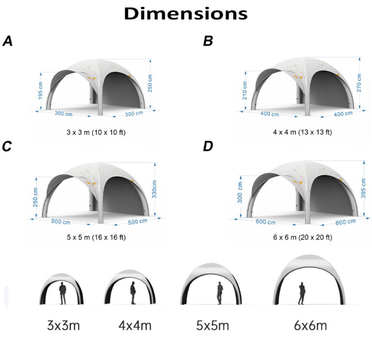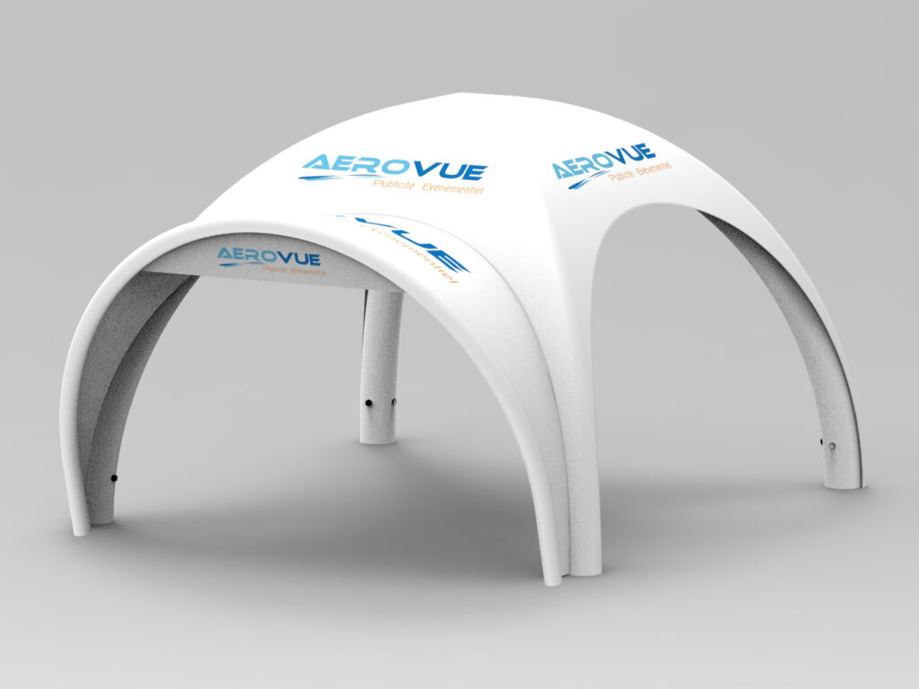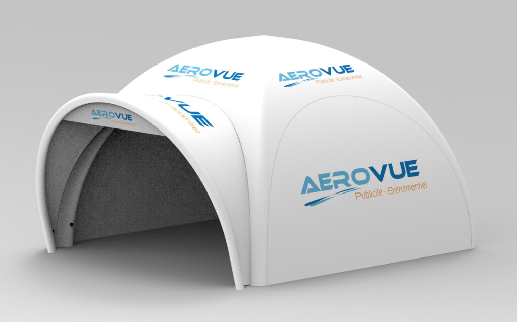 Tarif de nos tentes gonflables avec personnalisation complète – Structure tente + toit + 4 murs + sac de rangement + gonfleurs + accessoires : à partir de 1 859 euros HT